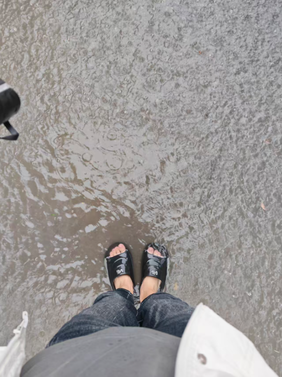 这时,我打着我的雨伞,走向了去公司的路。不出所料,果然迟到了。不过幸好我有先见之明,穿的是拖鞋,如果穿的是什么小白鞋,现在的处境会更糟糕。并且没有打车去上班,省了十几块钱,今天的午饭有着落了。开心。